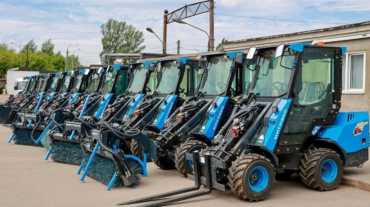 Всего было закуплено 20 мини-погрузчиков, а к ним — подметальные щетки и щетки с бункерами, паллетные вилы, косилки, ковши высокой нагрузки.