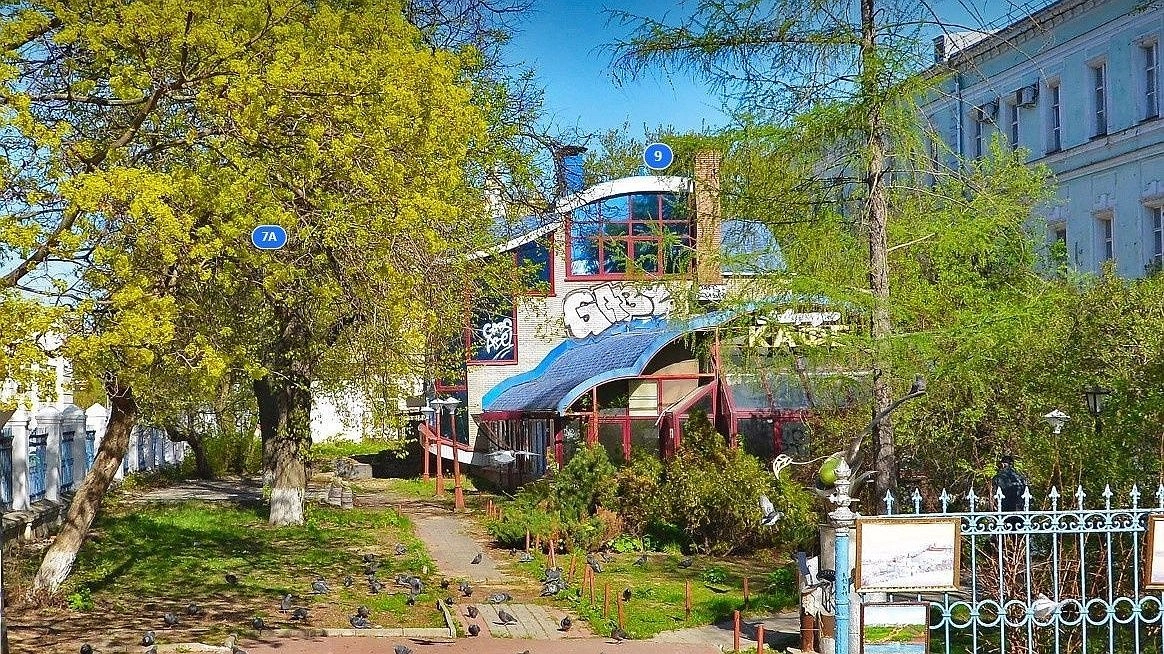 Заброшенное здание кафе находится в Университетском переулке, 9, возле Института филологии и журналистики вуза. В 2020 году у него отремонтировали фасад.