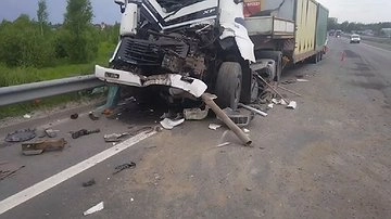 Авария произошла в 14:35 на 416-м километре трассы М-7 «Волга». 58-летний водитель фуры DAF, двигавшийся со стороны Москвы, столкнулся с КамАЗом, который был задействован в выполнении дорожных работ.