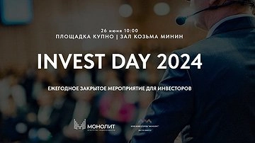 В Нижнем Новгороде 26 июня пройдет закрытая встреча инвесторов Invest Day — 2024 (16+), организованная агентством недвижимости и клубом инвесторов «Монолит». Мероприятие состоится на площадке Корпоративного университета правительства Нижегородской области (КУПНО). Участие в событии бесплатное, сообщает портал GIPERNN.RU.