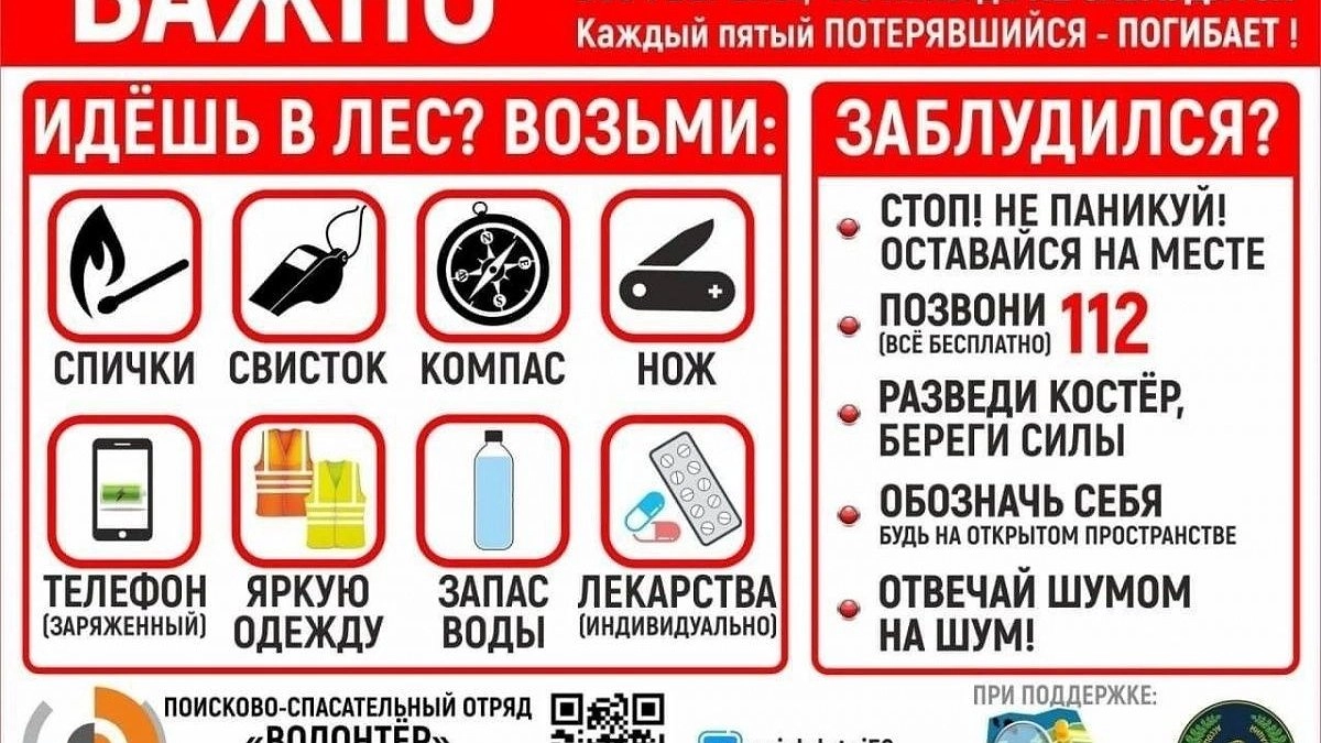 Раньше человек практически жил в лесу и знал, как там себя вести, а сейчас люди ходят туда один — два раза за лето, поэтому и теряются. На каждый такой поход, даже на шашлыки, надо серьезно готовиться, — подчеркнул Сергей Шухрин.