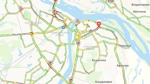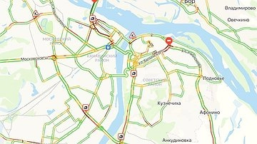 Девятибалльные заторы образовались на дорогах Нижнего Новгорода вечером 28 июня. Об этом сообщает сервис «Яндекс.Пробки».