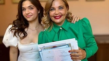 На фотографиях счастлива актриса стоит с дочерью Татьяной и держит аттестат девушки.