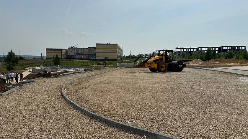 Завершить работы планируется в конце лета. Сейчас подрядчик готовит площадку, ведется укладка подготовительных слоев под асфальтировку из щебня и песка и устройство 1 200 погонных метров бортового камня.