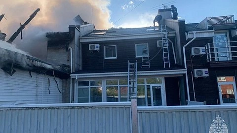 UPD: В 20:44 пожар был полностью потушен.