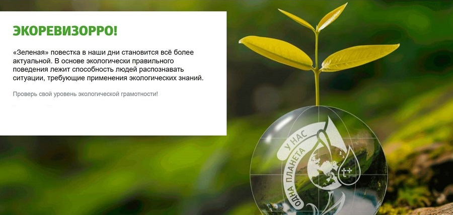«Экоревизорро» — экологическая игра, разработанная в «Т Плюс» для поддержки молодежных инициатив, развития волонтерства и реализации ESG-стратегии. Вопросы игры посвящены животному и растительному миру бассейна Волги, правильному экологическому поведению, принципам устойчивого развития, основным достижениям Группы «Т Плюс» в области сохранения природы.