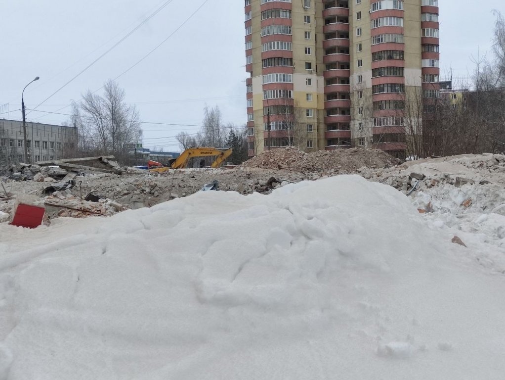 Снос ведет ООО «Лидер НН» по заказу ООО «Импульс». Сейчас здание уже демонтировано, а на площадке разбирают остатки конструкций.