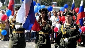 Также Гриневич написала, что девчата из школы № 49 удостоились права в составе почетного караула внести флаг Российской Федерации.
