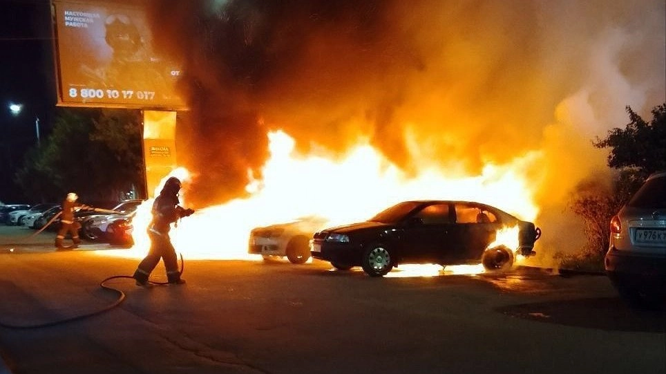По информации очевидцев, сначала вспыхнула одна машина, а потом пламя перекинулось на соседние.