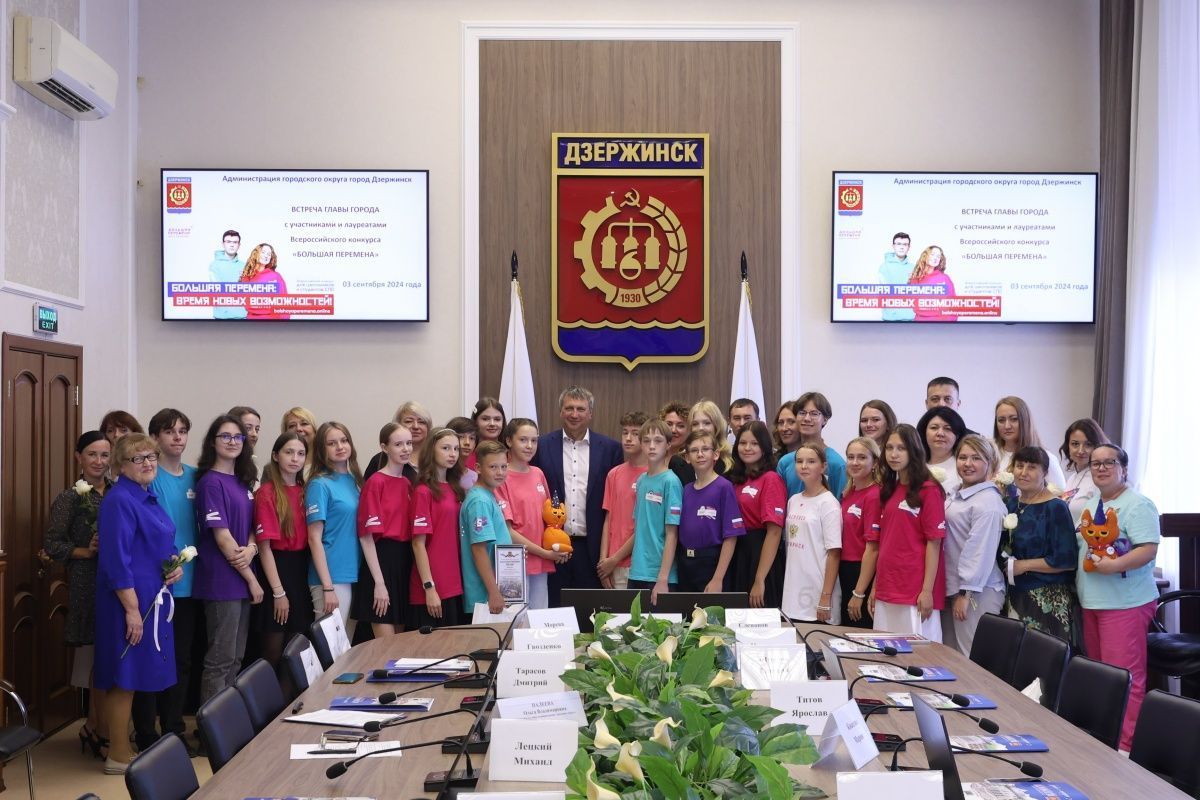 Семь школьников из Дзержинска Нижегородской области стали лауреатами юбилейного пятого сезона Всероссийского конкурса «Большая перемена». 3 сентября с ними встретился глава города Иван Носков, передает пресс-служба администрации.