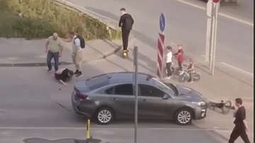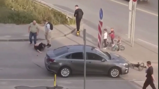 Курьер-велосипедист в Кстове Нижегородской области попал под колеса автомобиля. После чего его избили. Видео опубликовано в социальных сетях.
