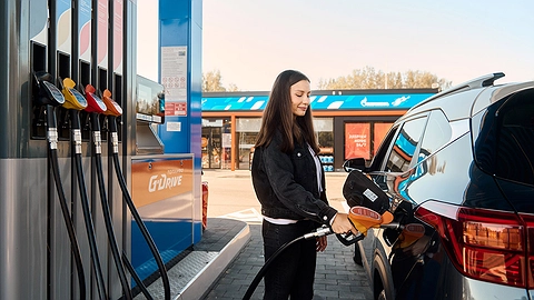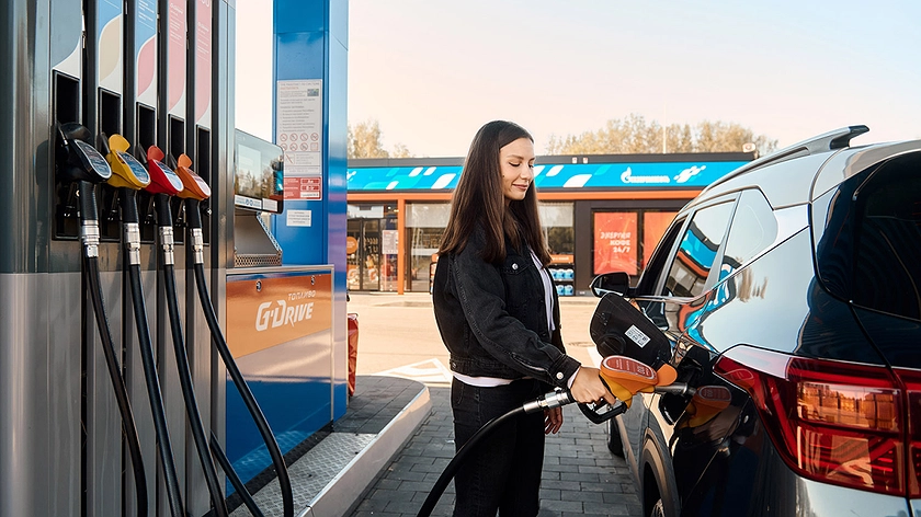 Анастасия заправляет свою Kia Seltos топливом G-Drive, неизменно на АЗС сети «Газпромнефть»: