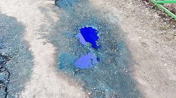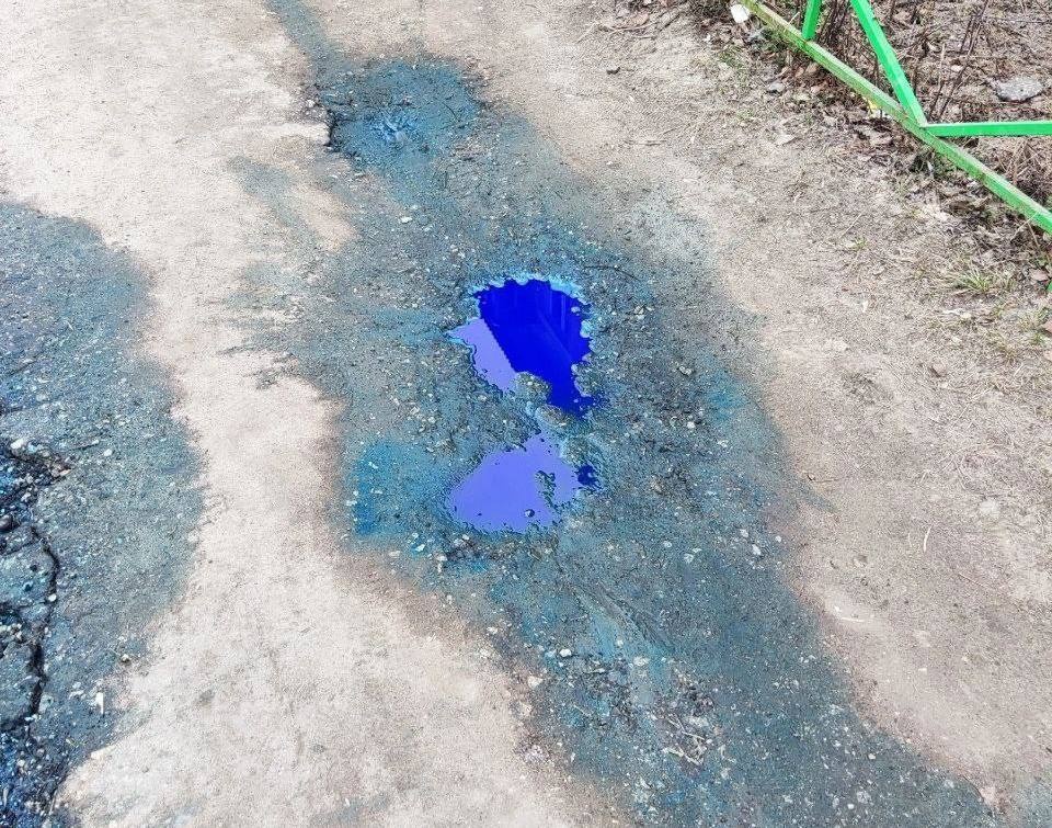 Лужи почти такого же цвета, как и знаменитые дзержинские синие собаки, обнаружили жители города химиков накануне на улице Кирова, 14. Фотографиями находки поделился местный блогер Алексей Алексеев у себя в Telegram-канале.