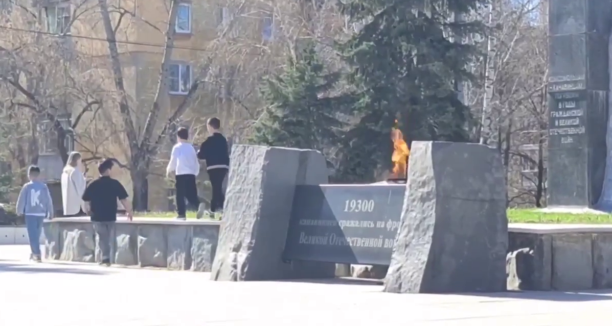 Очевидцы рассказали о том, что четверо маленьких мальчиков пинали памятник рядом с вечным огнем, установленный в сквере имени Григорьева в Канавинском районе, и кидали в него камни.