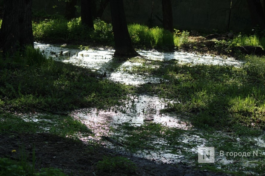 По словам жителей Канавинского района, парк подтапливает ежегодно. На данную проблему они обращали внимание, в том числе, во время обсуждения концепции благоустройства территории. Весной на отдельный участках долго стоит вода, которая подтапливает многочисленные арт-объекты, а также дорожки. Авторы концепции предлагали бороться с этой проблемой с помощью влагопоглощающих растений.