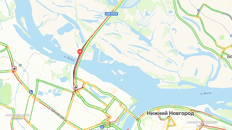 Затор зафиксирован в сторону Нижнего Новгорода. Причем водители стоят практически от Бора и до Мещеры. На улице Сергея Акимова произошло ДТП.