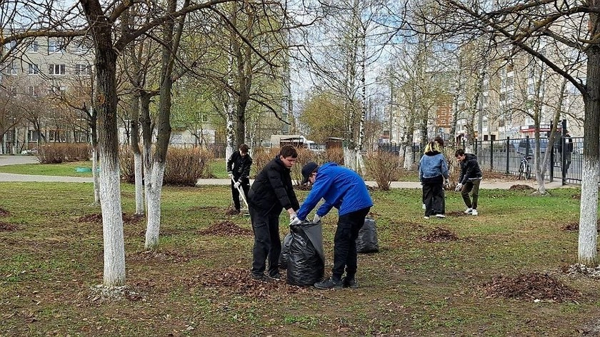 Например, студенты Дзержинского химического техникума имени Красной армии, помимо уборки около своего учебного заведения, приняли участие в субботнике на территории Собора Воскресения Христова.
