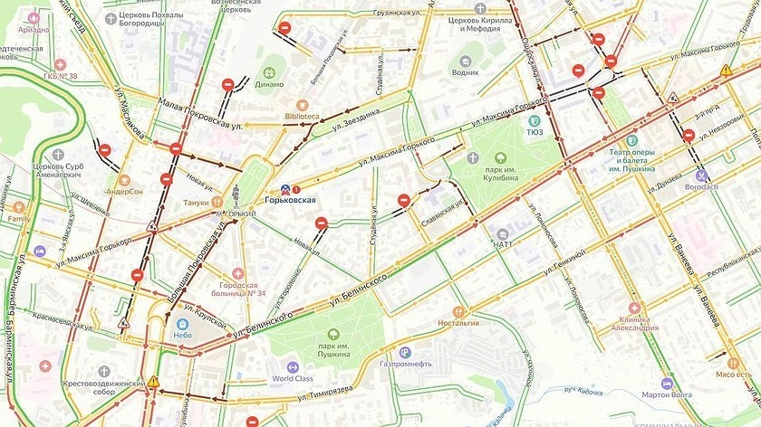 Серьезные пробки образовались в центре Нижнего Новгорода вечером 11 ноября. Об этом свидетельствуют данные соответствующего сервиса «Яндекса».