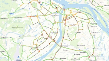 Огромные пробки сковали Нижний Новгород утром во вторник, 14 января. Загруженность на дорогах оценивается в 9 баллов из 10 возможных.