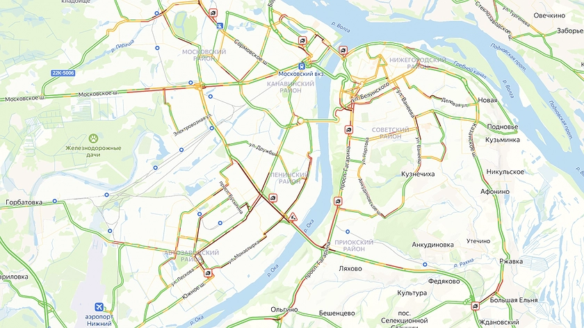 Кроме того, автомобилисты застряли на Мызинском мосту, в районе площади Лядова, около стадиона на Стрелке, на улице Коминтерна и на въезде в Нижний Новгород со стороны Ольгина.