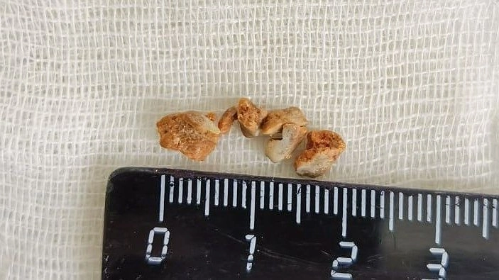 Однако после первой операции злоключения пациента не закончились. При ревизии мочеточника были обнаружены еще четыре камня. Сейчас врачи их удалили, пациент чувствует себя хорошо.