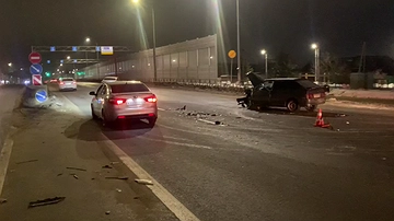 Происшествие случилось в 23:10. Неизвестный водитель ВАЗ 2114 выезжая с прилегающей территории не уступил дорогу автомобилю «Хендай» и столкнулся с ним. От удара вся передняя часть отечественной машины оказалась смята.