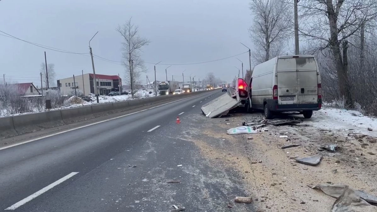 Водитель Fiat Ducato отвлекся от управления автомобилем и наехал на стоящие транспортные средства на обочине, а именно на Daewoo и грузовик.