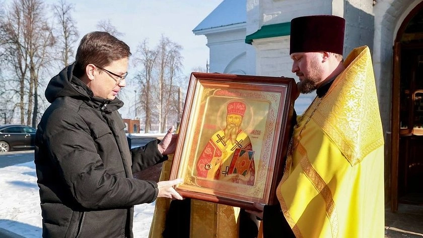 Мэру столицы Приволжья Юрию Шалабаеву подарили икону с частицей мощей святого Афанасия Ковровского. Об этом глава города сообщил в своем Telegram-канале.