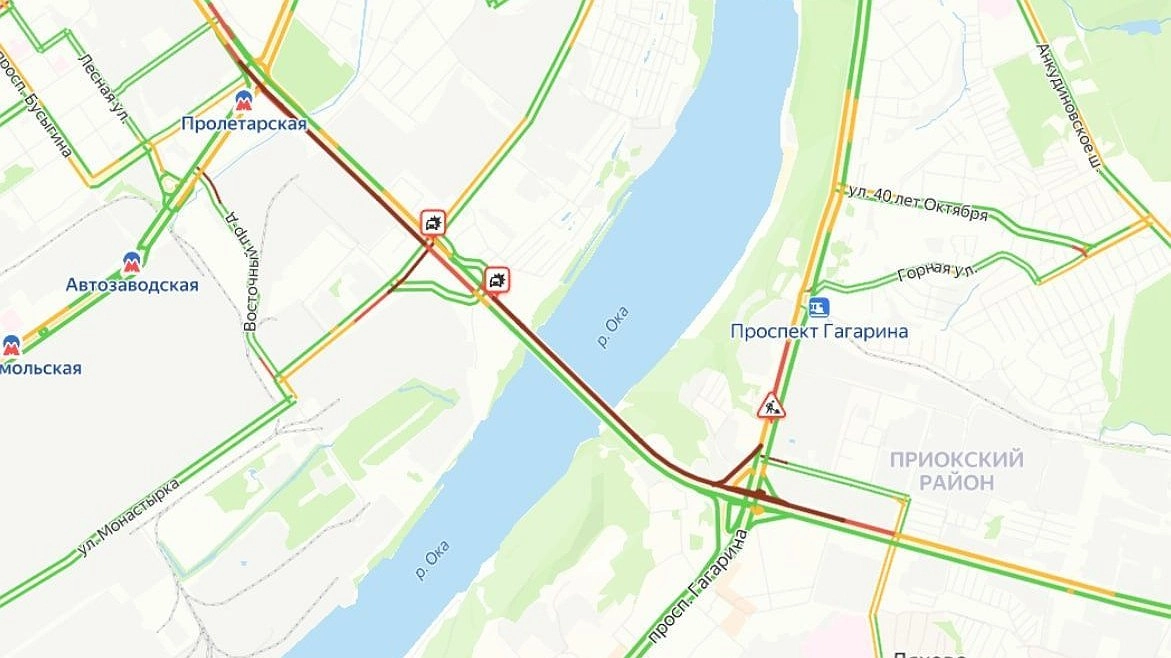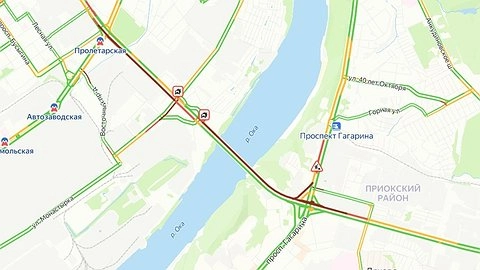 Серьезная пробка образовалась на Мызинском мосту в Нижнем Новгороде вечером 19 мая. Она тянется от проспекта Гагарина до проспекта Ленина. Об этом свидетельствуют данные сервиса «Яндекс. Карты».