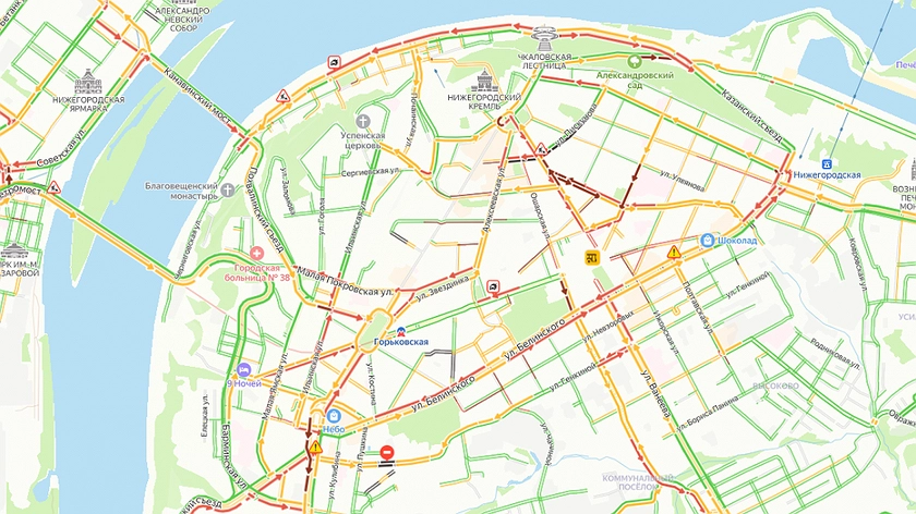 Пробки в 8 баллов наблюдаются на дорогах Нижнего Новгорода в вечерний «час пик» четверга, 16 мая, по данным профильного сервиса от компании «Яндекс».