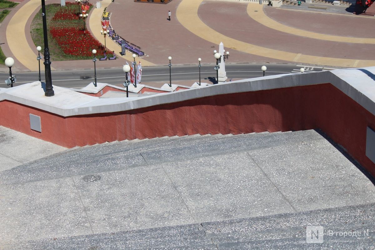 Большинство трещин и сколов на Чкаловской лестнице в Нижнем Новгороде устранены. Об этом сообщает корреспондент ИА «В городе N», состояние общественных пространств в центре приволжской столицы.