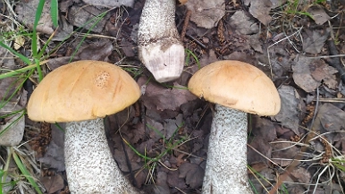 На фотографиях видно три подосиновика и один подберезовик. По словам автора, у подберезовика была червивая ножка.