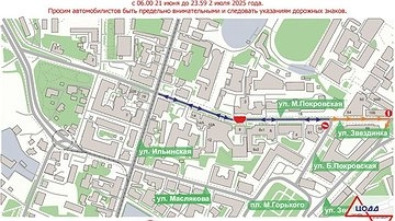 Часть улицы Малой Покровской будет закрыта для движения до 23:59 31 июля. Об этом сообщает пресс-служба администрации Нижнего Новгорода.
