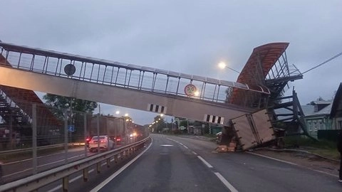 Минувшей ночью на 131-ом км автодороги, в деревне Липна Петушинского района случилось ДТП. Водитель автомобиля «ГАЗ», двигавшийся в сторону Нижнего Новгорода, врезался на опору надземного пешеходного перехода, из-за чего конструкция частично обрушилась.
