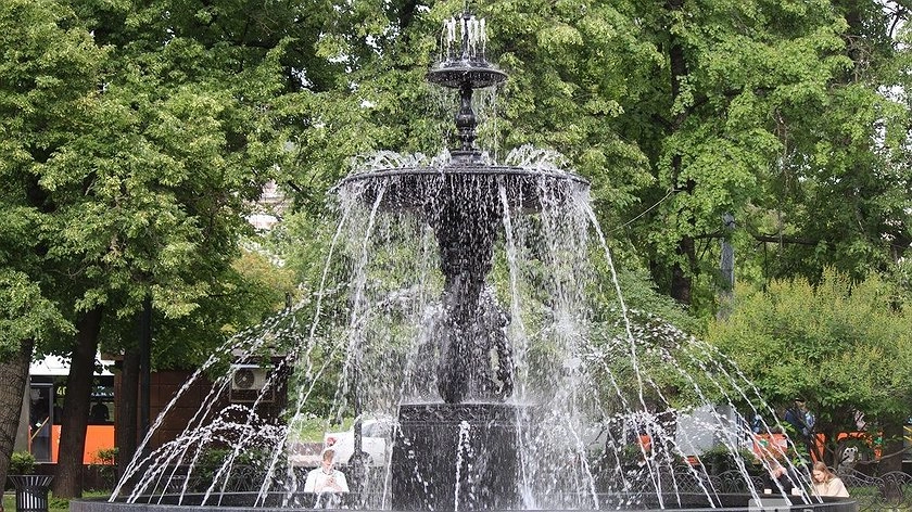 Фонтан около ДК имени Орджорникидзе сейчас восстанавливается. До этого он не работал много лет. Ремонт должен завершиться к 1 июля.
