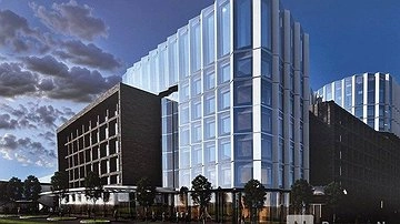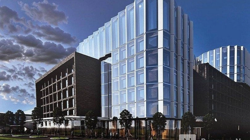 Конгресс-холл с пятизвездочным отелем появится возле Нижегородской ярмарки в 2028-2029 годах. Сейчас площадка под будущее строительство огорожена забором, на котором размещены рендеры будущих объектов. На это обратила внимание корреспондент ИА «В городе N».