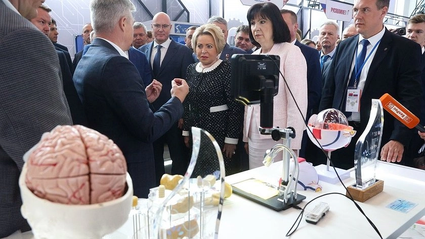 Им продемонстрировали новейшие разработки в сфере топливно-энергетического комплекса, авиационной промышленности, атомного и общего машиностроения, а также в сфере медицины: лазеры для эстетической хирургии, нейрохирургии и травматологии. Также им показали новшества в сфере станкостроения, роботизации, беспилотных технологий, автомобильной промышленности и сельского хозяйства. В частности, спикеры увидели новый мотоблок и генератор, а также промышленного робота. Кроме того, они ознакомились с образцами косметической и текстильной продукции, в числе которых были даже шубы.