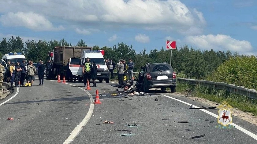 Напомним, авария 2 июля, примерно в 08:58, на 200-м километре трассы Нижний Новгород — Шахунья — Киров. 47-летний мужчина за рулем большегруза Renault Premium превысил скорость, после чего прицеп занесло на встречную полосу. Это стало причиной столкновения с Lada Granta, в которую затем влетел автомобиль МАЗ под управлением 25-летнего водителя, не выбравшего безопасную дистанцию.