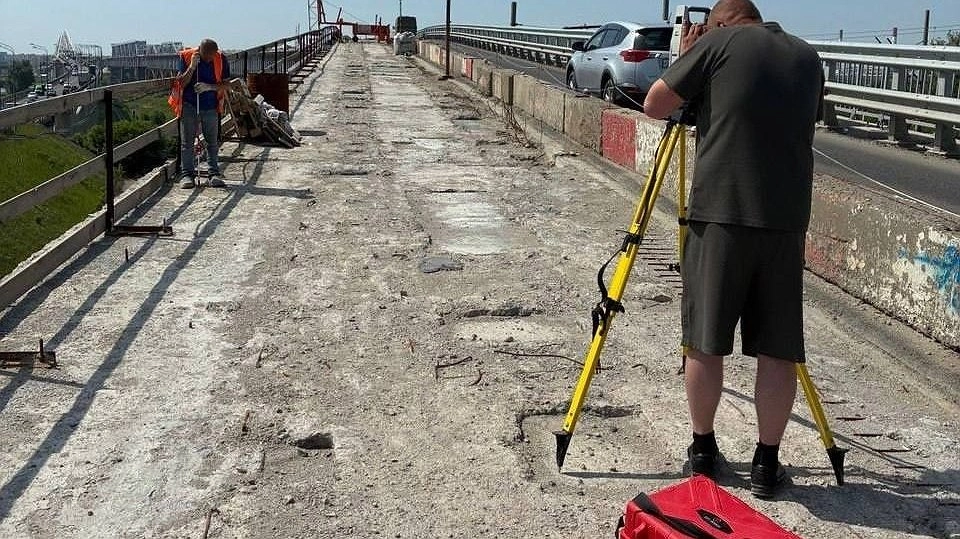 Сейчас на мосту трудятся до 35 человек днем и до 25 — ночью. Они готовят поверхности к устройству выравнивающего слоя из бетона, выполняют армирование выравнивающего слоя, а также армирование и бетонирование деформационных швов.