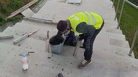 В «Центре 800» сообщили, что 7 июля рабочие приступили к ремонту лестниц.