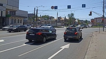 Согласно отчету центра, после внесенных изменений автомобили могут поворачивать налево по одной полосе, в то время как по двум полосам продолжается прямое движение.