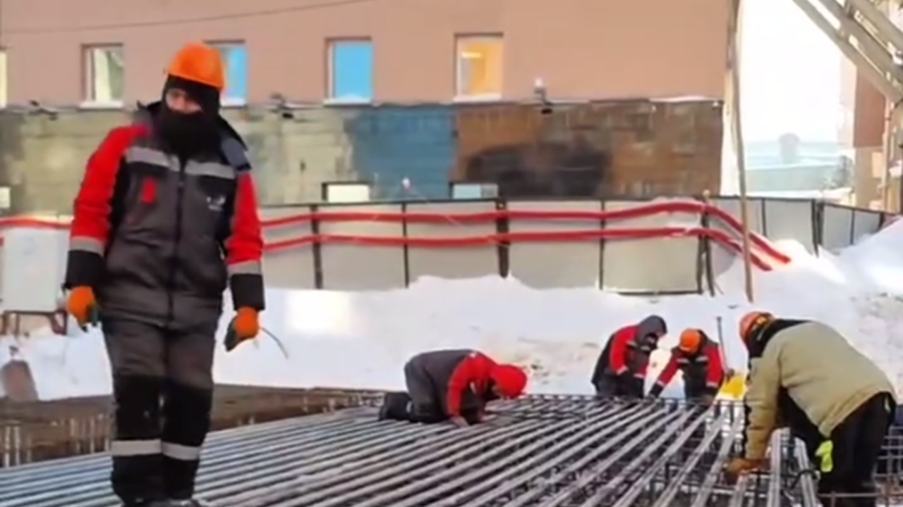 Бетонная конструкция размером 15,5 на 15,5 метра расположится рядом с торцом возводимого стартового котлована. Сейчас рабочие занимаются армированием - монтируют металлический каркас, для которого потребуется 48 тонн арматуры. После завершения этого этапа конструкцию зальют 168 кубометрами бетона.